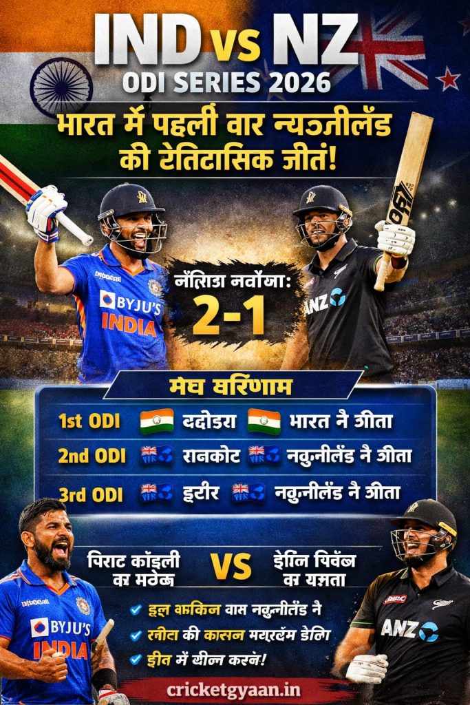 🔹 पहली बार: न्यूजीलैंड ने भारत में ODI सीरीज जीत हासिल की 🇳🇿🏆 — 38 साल में पहली बार ऐसा हुआ है।